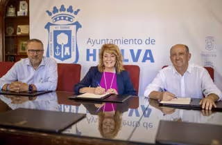La alcaldesa de Huelva, Pilar Miranda; y el presidente de la Asociación Hispanidad Avanza, Antonio González; acompañados por el concejal de Servicios Sociales, Familias y Accesibilidad, José Manuel Moreno, han suscrito un convenio destinado a colaborar con la dinamización del Plan Integral del Distrito V de la ciudad de Huelva. Así, tras la firma de este acuerdo, el Consistorio onubense colaborará con la infraestructura, el equipamiento, la logística, la participación y los gastos de la oficina técnica del mismo, entre otras cuestiones.