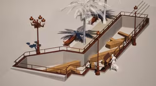Por ello, el espacio expositivo emergerá del pavimento para permitir que la lectura de la fachada de la iglesia pueda verse de manera más completa. Respetando por lo tanto la nobleza de esa fachada de la Iglesia, la intervención que se propone mantiene y potencia la lectura histórica sobre el edificio, para poner en relación los restos arqueológicos aparecidos y este Bien de Interés Cultural, referente en la ciudad de Huelva.