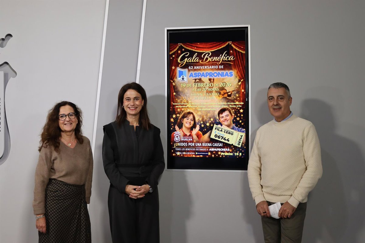 El Ayuntamiento de Huelva ha presentado este miércoles la Gala Benéfica con motivo del 62 aniversario de Aspapronias, una cita solidaria que tendrá lugar el 19 de febrero, a las 20,00 horas, en el Gran Teatro de la capital, con el objetivo de recaudar fondos para apoyar la labor social que esta entidad desarrolla en la ciudad.