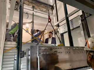 El alcalde de Huelva, Gabriel Cruz, visita las obras de instalaciób de ascensores - AYUNTAMIENTO DE HUELVA