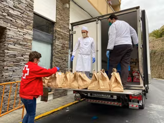 Asimismo, los servicios de limpieza del Ayuntamiento de Huelva se encargarán de la desinfección diaria de la cocina. Además, para el reparto, se ha facilitado un camión frigorífico, incluyendo su mantenimiento y desinfección diaria.