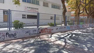 Pintada en un centro escolar antes de su retirada por los servicios municipales. - AYUNTAMIENTO DE HUELVA