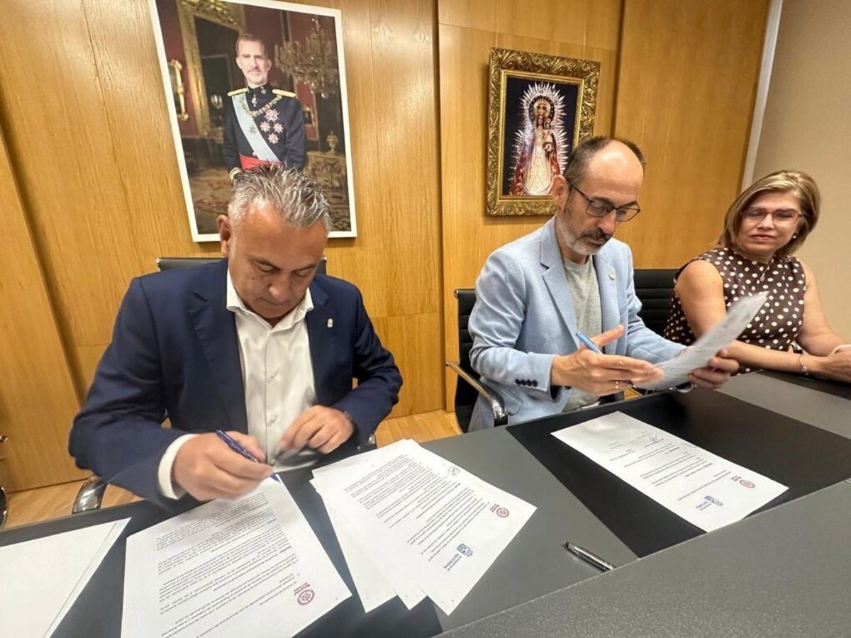 El alcalde de Isla Cristina, Jenaro Orta, y el rector de la Universidad de Huelva (UHU), José Rodríguez Quintero, firmaron este jueves un convenio que sienta las bases para la creación de la 'Cátedra del Mar: Educación, Patrimonio y Gastronomía'.