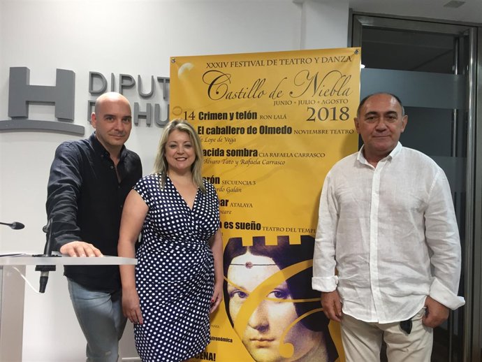 La diputada de Cultura, Lourdes Garrido; el director de la compañía Noviembre Teatro, Eduardo Vasco, y el actor Arturo Querejeta, han presentado este viernes la obra 'El Caballero de Olmedo', espectáculo que se llevará a escena el sábado dentro del XXXIV Festival de Teatro y Danza Castillo de Niebla y que supone una reflexión sobre el desprecio a quien es difererente.