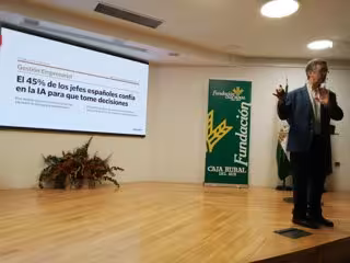 En relación con el impacto de las nuevas tecnologías, el pasado 14 de marzo se contó con la participación de Carlos Fernandez Iñigo, director general adjunto (Chief Technology Officer) de Informa D&B que abordó, en el salón de actos de la Fundación Caja Rural del Sur, el reto que supone para una PYME enfrentarse a la Inteligencia Artificial, destacando sus opciones, oportunidades y riesgos.
