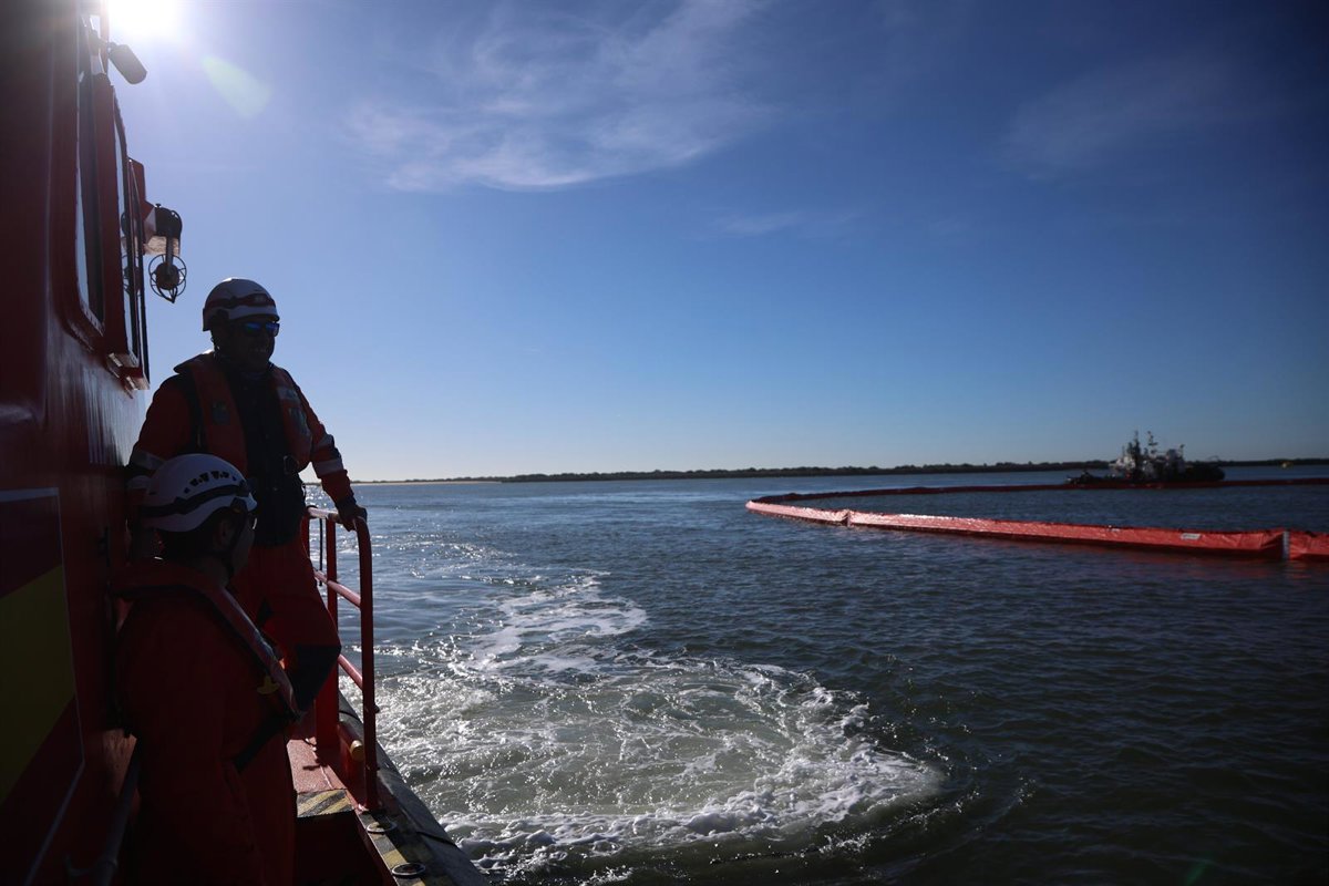 El capitán marítimo de Huelva, Alejandro Andray, ha explicado que se trata de la simulación de un vertido que "por causa de la marea y del viento se aconcha sobre la orilla izquierda y se extiende hacia Mazagón".