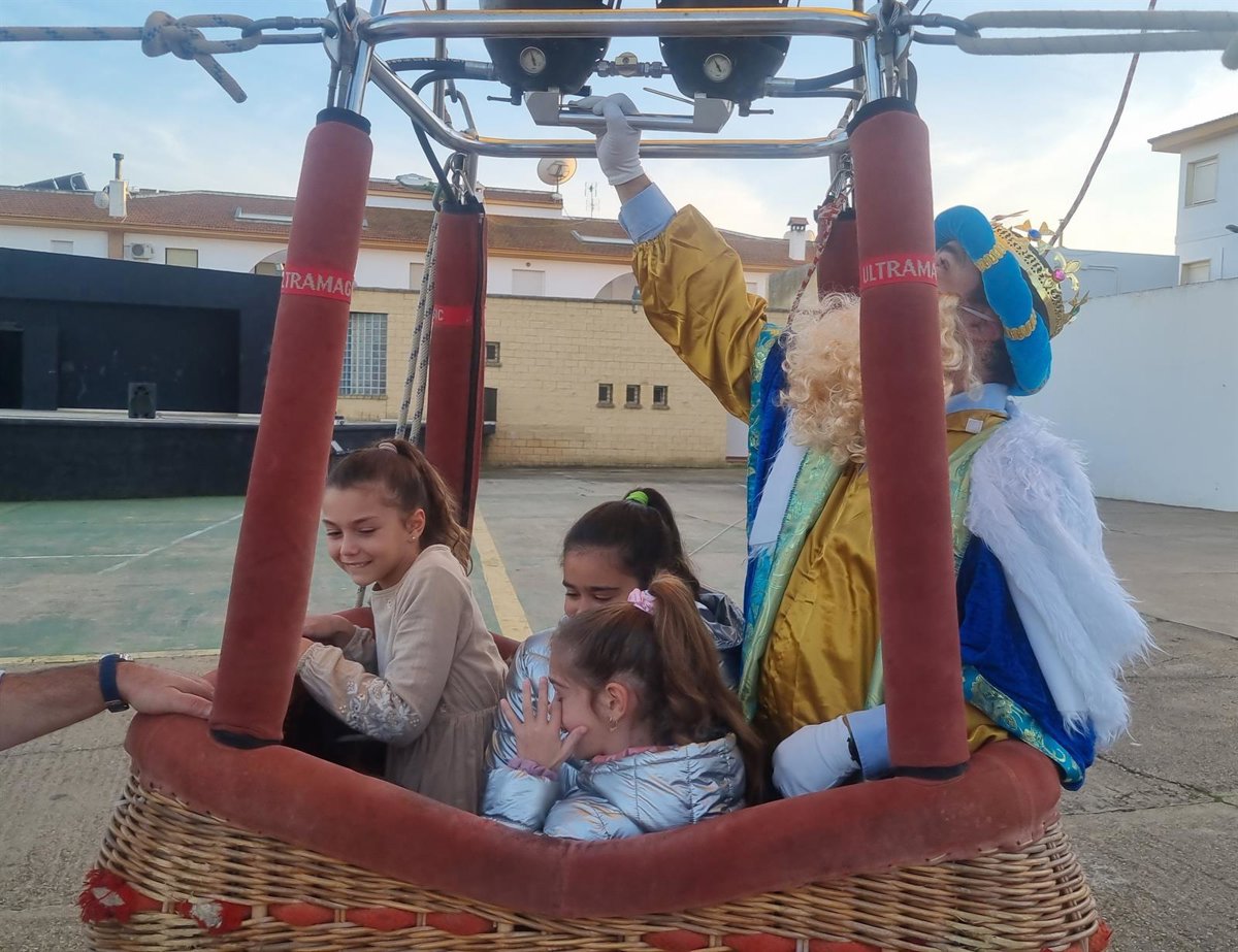 Los Carteros Reales llegaron este martes, por primera vez al municipio, en globos aerostáticos. Por ello, cientos de niños y de familias se acercaron hasta el parque rústico de Bellavista y hasta el recinto ferial de Aljaraque para entregarles sus sus cartas a los Reyes Magos.