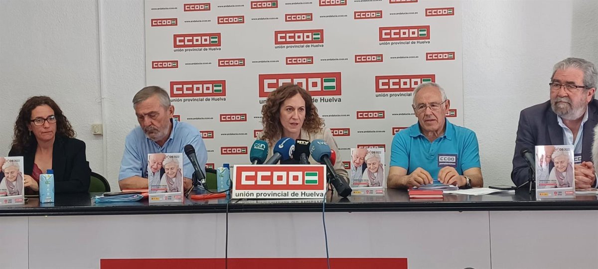 La secretaria general de CCOO en Andalucía, Nuria López, en rueda de prensa en Huelva. - R.D/EUROPA PRESS