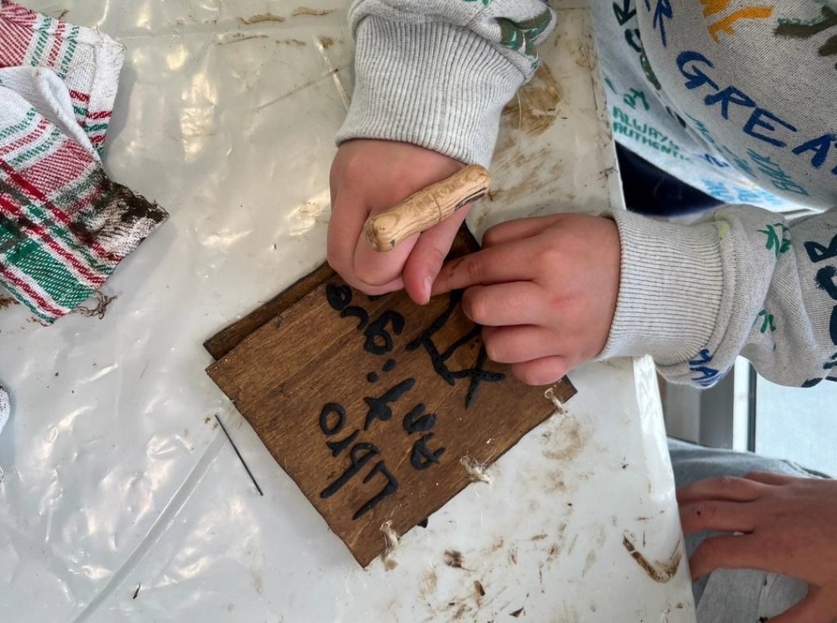 Para los talleres, el alumnado utilizará diferentes materiales acordes a su edad. Así, para la elaboración de tabillas de madera y cera será necesario el uso de seguetas, madera, plastilina, betún de judea y cuerda; para el taller de creación de periódico decimonónico se utilizará papel continuo gris, rotuladores y pincel negro; y para el taller de modelación de tabilla de barro cuneiforme se hará uso de barro, rodillo, agua y punzones.