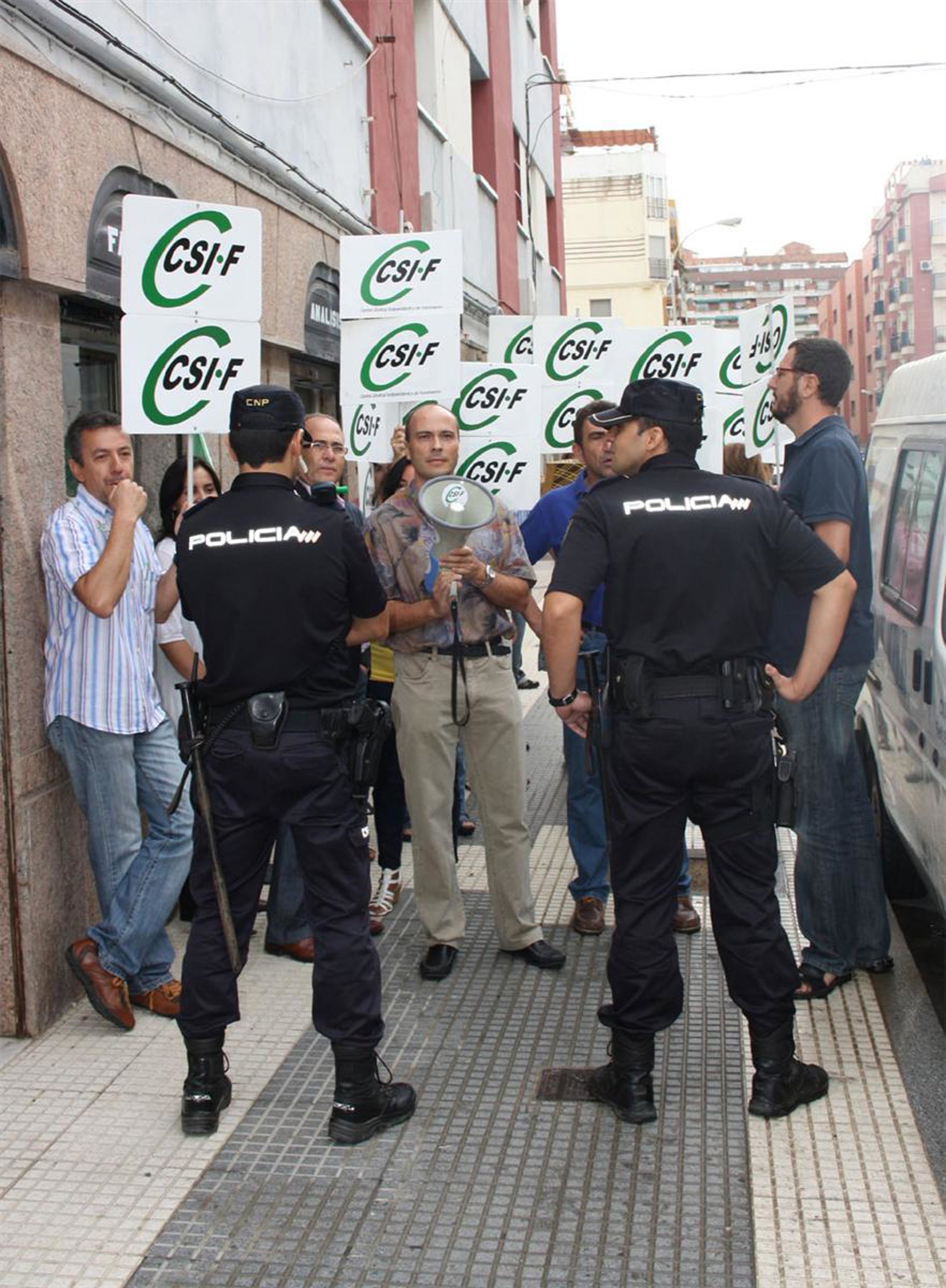 Durante su visita a la barriada Molino de la Vega, donde se ha llevado a cabo la renovación de los servicios urbanos con fondos de inversión local, una veintena de delegados del sindicato CSI-F ha increpado al ministro y se han manifestado en señal de protesta por los recortes de derechos a los empleados públicos y la reordenación del sector.