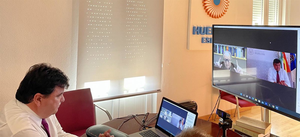 Reunión telemática entre el alcalde de Huelva, Gabriel Cruz, y el científico Juan Pérez Mercader. - AYUNTAMIENTO DE HUELVA