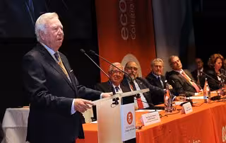 Después de recibir el premio que ha creado el Colegio de Economistas de Huelva y la medalla de oro del mismo, García Palacios le dijo a quien había glosado su trayectoria, el catedrático y onubense Manuel Lagares, que "se sentía abrumado por sus palabras" y "más viniendo de una persona de reconocido prestigio con el cual he colaborado en cuestiones que eran importantes para España, principalmente en los años de la transición y los primeros gobiernos democráticos". Y al Colegio le ha felicitado por haber creado un premio que se denomine 'Confluencia' porque tanto en Huelva como España "hay que trabajar, desde las distintas responsabilidades de gobierno en las administraciones e instituciones con una mayor unidad".
