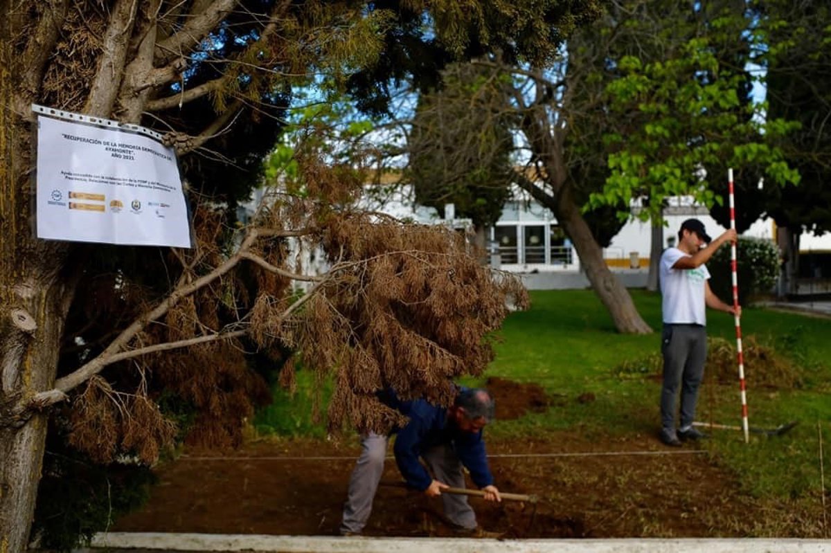 Los trabajos, que consisten en la realización de catas con pequeñas excavaciones en distintos puntos de la explanada de la zona ajardinada del camposanto municipal, se llevan a cabo en el marco de la iniciativa para la Recuperación de la Memoria Democrática de Ayamonte que cuenta con la ayuda del Gobierno de España, a través del Ministerio de Presidencia, Relaciones con las Cortes y Memoria Democrática, y de la Federación Española de Municipios y Provincias.
