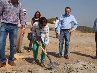 La diputada de Desarrollo Local, Innovación, Medio Ambiente y Agricultura, Esperanza Cortés, acompañada de la diputada territorial de la Cuenca Minera, Susana Rivas, y el alcalde del municipio de Nerva, Domingo Domínguez Bueno, han inaugurado las obras con la primera piedra del punto de acopio para la gestión de residuos de la construcción y la demolición (escombros) en el Paraje de Valdeperros.