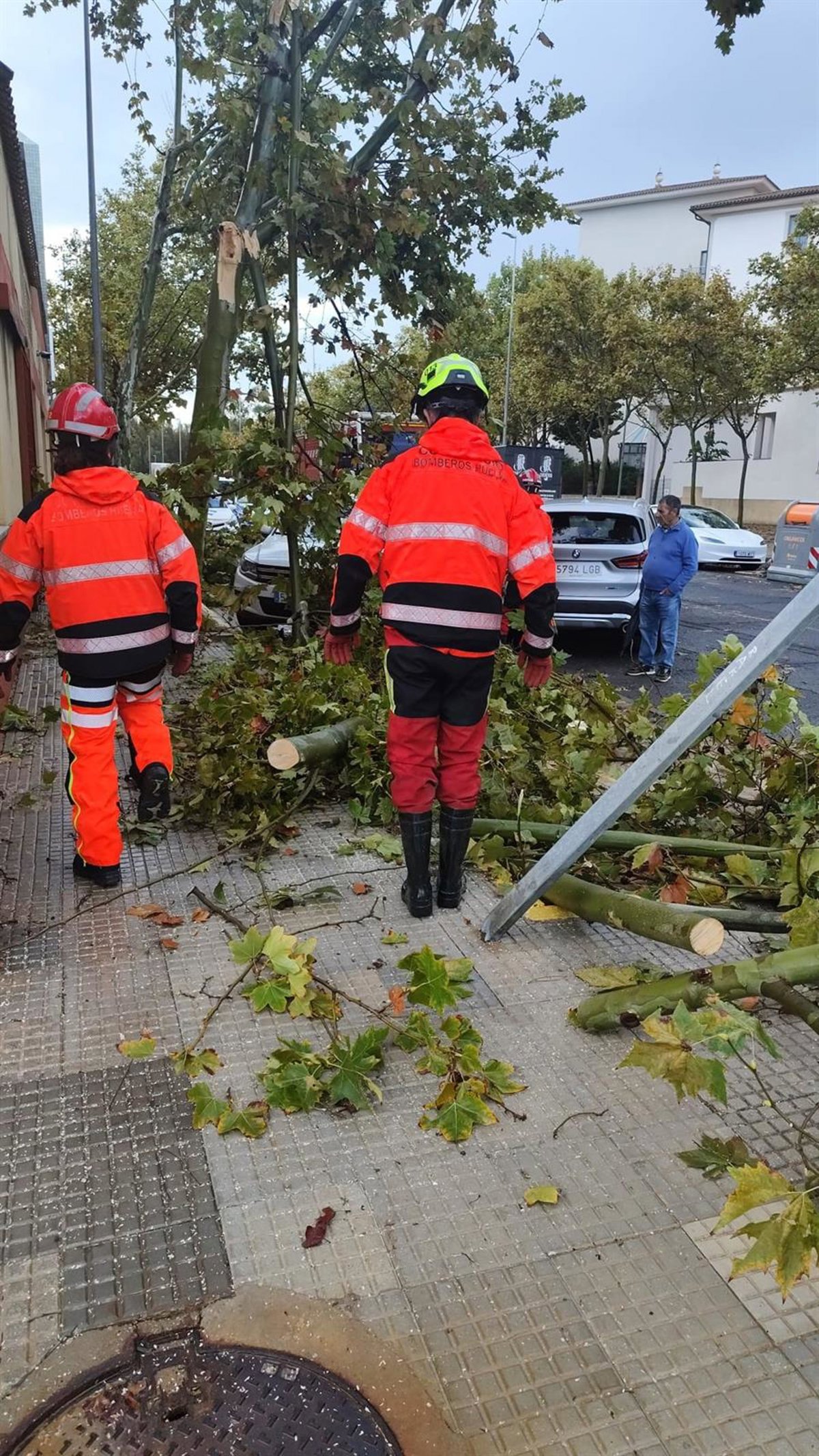 Por otro lado, también se ha actuado en varias caídas de árboles en la N-431 dentro del casco urbano de Gibraleón y en San Juan del Puerto y actualmente se está trabajando en inundaciones en la avenida de los Conquistadores en Mazagón y en el casco urbano de Almonte.