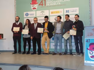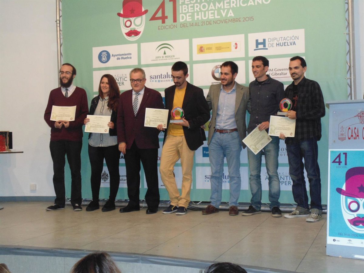 El director del Instituto Andaluz de la Juventud (IAJ), Francisco Pizarro, acompañado por el delegado territorial de Igualdad, Salud y Políticas Sociales, Rafael López, y el coordinador provincial, Sebastián Pérez, han asistido este viernes al acto de entrega de premios del Certamen de Cortos 'Desencaja', cuya final ha estado enmarcada en el Festival de Cine Iberoamericano que desde el pasado 14 de noviembre viene celebrándose en la capital onubense.