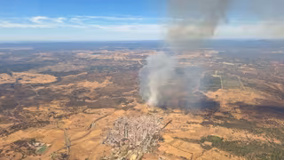 Asimismo, el alcalde de Calañas, Diego Carrasco, a través de las redes sociales del Ayuntamiento ha explicado que el incendio se encuentra cerca del núcleo urbano, pero "todos los medios aéreos y terrestres" están trabajando.