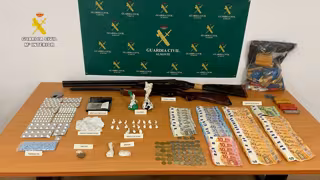 También se hallaron útiles de pesaje, envasado y corte de la droga y dos armas, una escopeta que consta como sustraída y una carabina que podría ser ilegal por haber sufrido modificaciones, así como dinero en efectivo y diversas anotaciones con nombres de toxicómanos y deudas contraídas, siendo detenidas dos personas.