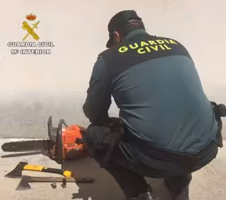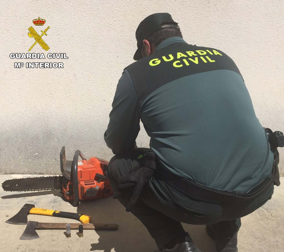 Posteriormente, tras el seguimiento del vehículo, fue localizado en su domicilio y salió de éste "con una actitud amenazante" y portando en su mano una motosierra que no pudo arrancar, por lo que prosiguió sus amenazas con un hacha.