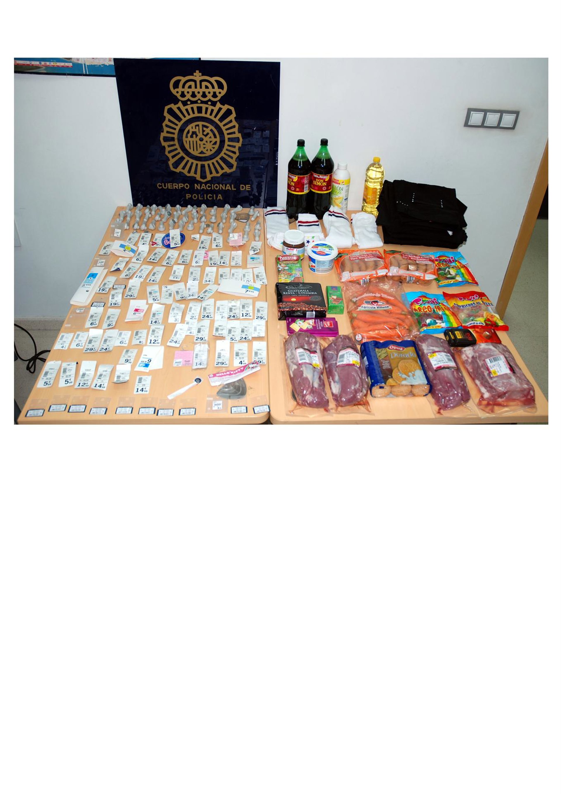 Examinado el maletero del vehículo, encontraron gran cantidad de artículos procedentes de cinco de los establecimientos ubicados en el complejo El Polvorín, Media Markat, Mercadona, Día, Kiabi y C&A. Los efectos eran de todo tipo, electrodomesticos, alimentos, bebidas, ropa de vestír, pantalones, jerseys o calcetines, entre otros.