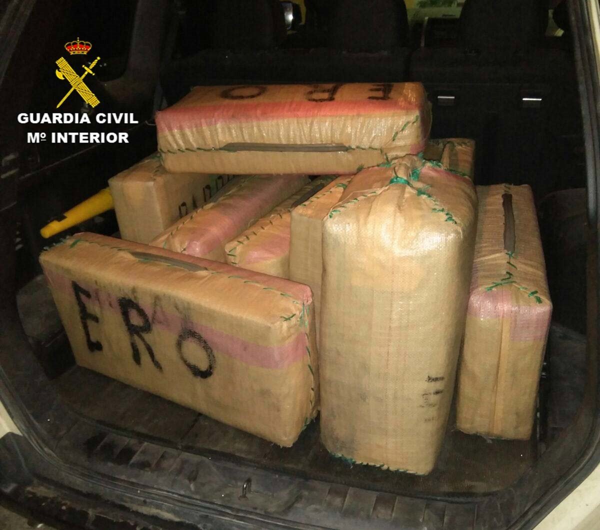 Tras el abordaje, examinada la embarcación, los agentes hallaron en su interior varios fardos que contenían hachís, de características similares a los que fueron lanzados por la borda por los ocupantes, procediendo a la detención de los dos varones y poniendo rumbo al puerto de Ayamonte.