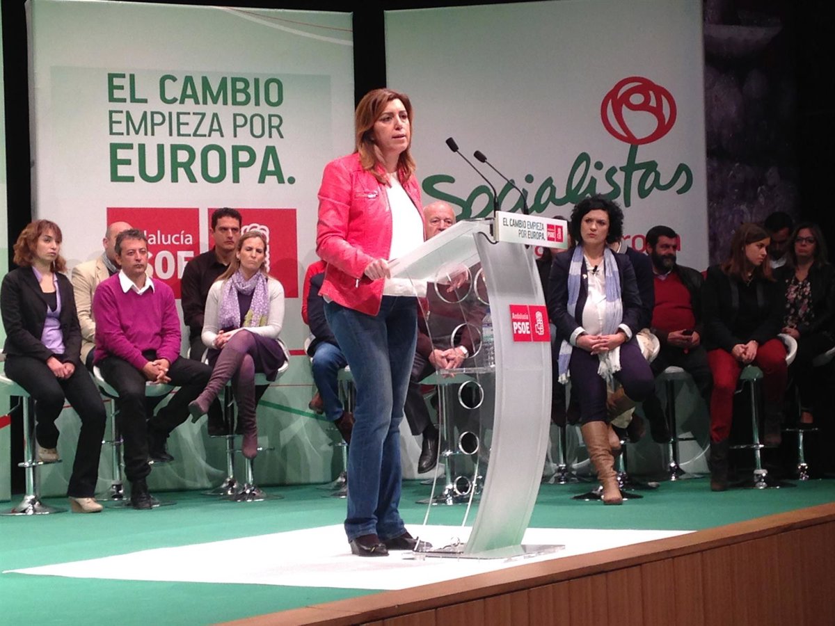 La presidenta de la Junta de Andalucía, Susana Díaz, ha lanzado este sábado un mensaje a los andaluces pidiendo su voto socialista en las próximas elecciones europeas del 25 de mayo porque "se juegan mucho" y sobre todo para decir "no" a un partido "tóxico", refiriéndose al PP, que "ha hecho mucho daño a Andalucía".