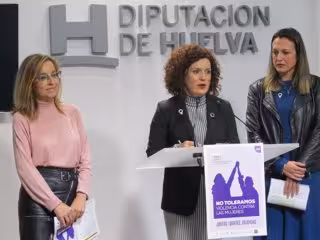 La vicepresidenta de Territorio Inteligente de la Diputación de Huelva, María Eugenia Limón; la concejal de Políticas Sociales e Igualdad del Ayuntamiento de la capital, María José Pulido; y la directora de Igualdad y Atención a la Diversidad de la Universidad de Huelva, Cinta Martos, han presentado este jueves el programa de actividades organizadas conjuntamente con motivo del Día Internacional contra la Violencia de Género.