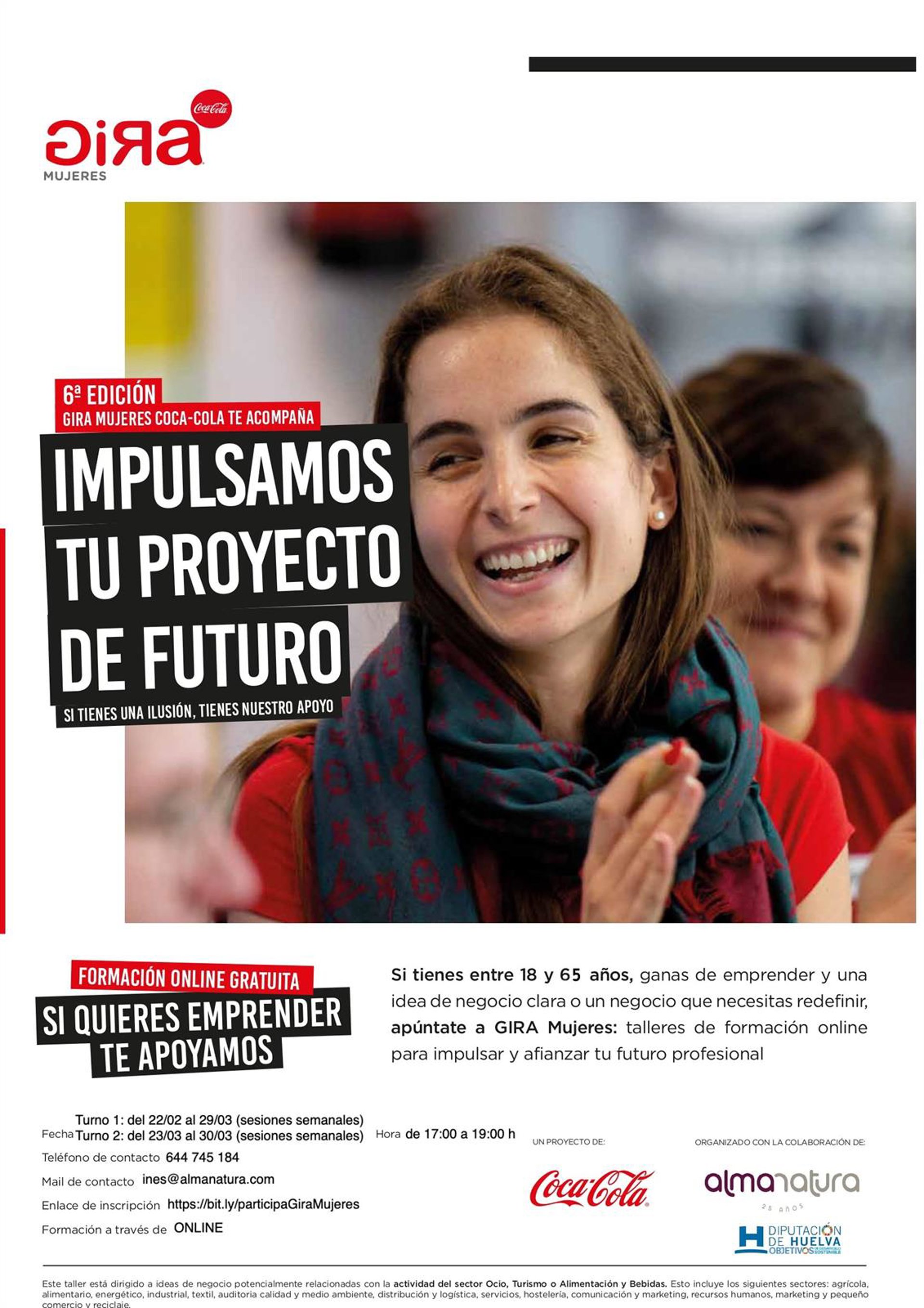 Los departamentos de Igualdad y Desarrollo Territorial de la Diputación de Huelva, junto a la empresa social AlmaNatura, difundirán por la provincia la VI edición de la 'Gira Mujeres', impulsada por Coca-Cola. Se trata de un programa de formación y capacitación para mujeres de toda España, de entre 18 y 65 años que residan en un pueblo, que quieran desarrollar una idea de negocio a través del emprendimiento.