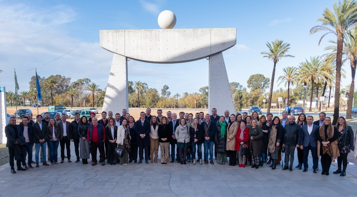 La presidenta de la Diputación de Huelva, María Eugenia Limón, junto a representantes de 77 municipios de la provincia. - DIPUTACIÓN DE HUELVA