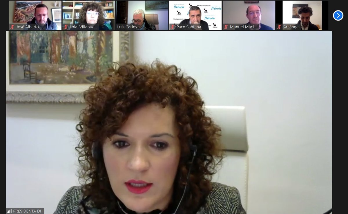 La presidenta de la Diputación de Huelva, María Eugenia Limón, ha mantenido este jueves una reunión telemática en torno al proyecto de creación de una Ruta del Fandango de Huelva con alcaldes, alcaldesas y representantes de ayuntamientos de la provincia que cuentan con palos del fandango propios o que celebran festivales y certámenes en torno a esta expresión artística.