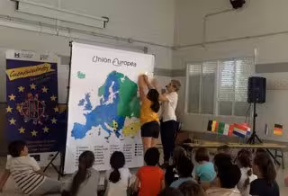 Durante el desarrollo de esta actividad, los menores participan en una sesión informativa de aproximadamente una hora a través de la que se da a conocer las características más relevantes de la UE desde su origen, un recorrido por su historia desde sus inicios hasta hoy, sus capitales, el Día de Europa, su moneda, himno, lema y bandera, y hace hincapié en diferentes aspectos de los países que la componen y en los valores que la caracterizan, como la interculturalidad, la solidaridad y la tolerancia.