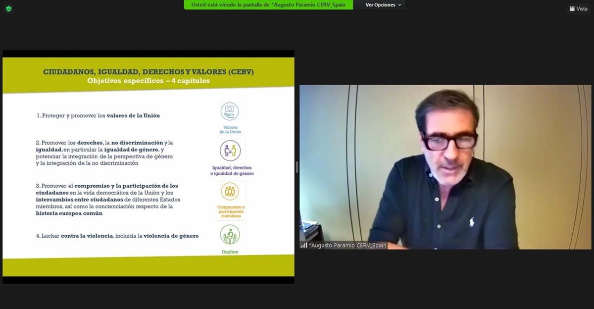 La jornada de este jueves ha acogido el webinar 'El nuevo programa europeo: 'Ciudadanos, Igualdad, Derechos y Valores 2021-2027' organizado desde el Centro de Información Europea 'Europe Direct Huelva' que gestiona la Diputación. El principal objetivo de este webinar ha sido presentar a las entidades locales y asociaciones de la provincia las oportunidades que ofrece esta nueva iniciativa europea que entró en vigor oficialmente en España el pasado 31 de mayo.