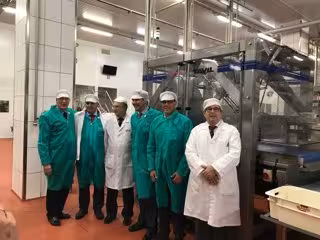 El presidente de la Diputación de Huelva, Ignacio Caraballo, el alcalde de Jabugo (Huelva), Gilberto Domínguez, y el presidente de la Autoridad Portuaria de Huelva, José Luis Ramos, han visitado la sede central de El Pozo Alimentación en Murcia para conocer los detalles de la implantación de la nueva planta de elaboración de productos del cerdo ibérico que la compañía va a ubicar en Jabugo.