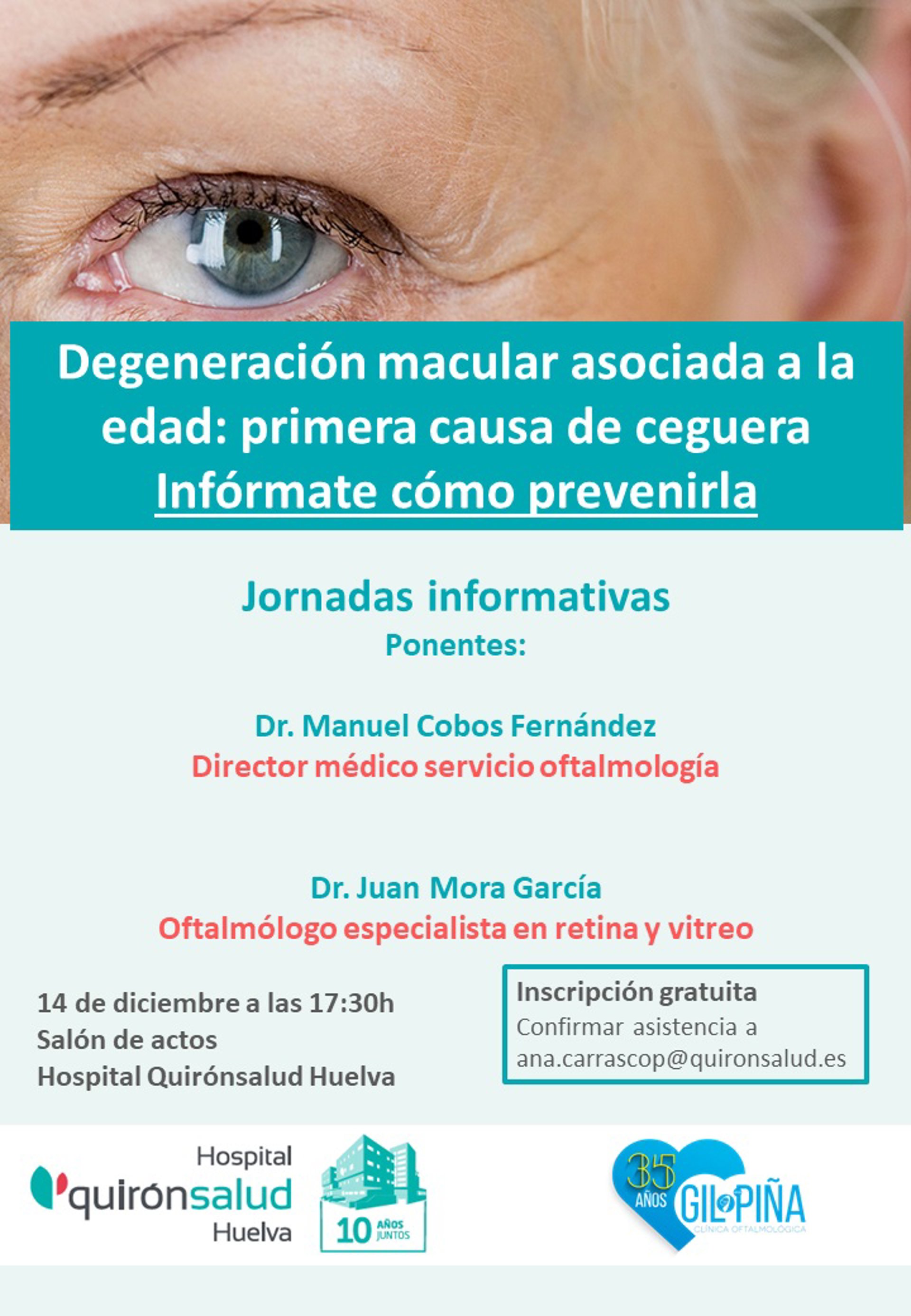 De este modo, el próximo jueves 14 de diciembre, el doctor Cobos junto con el doctor Juan Mora García, oftalmólogo especializado en retina y vitreo ofrecerán unas jornadas informativas gratuitas en el salón de actos del Hospital Quirónsalud acerca de la DMAE.