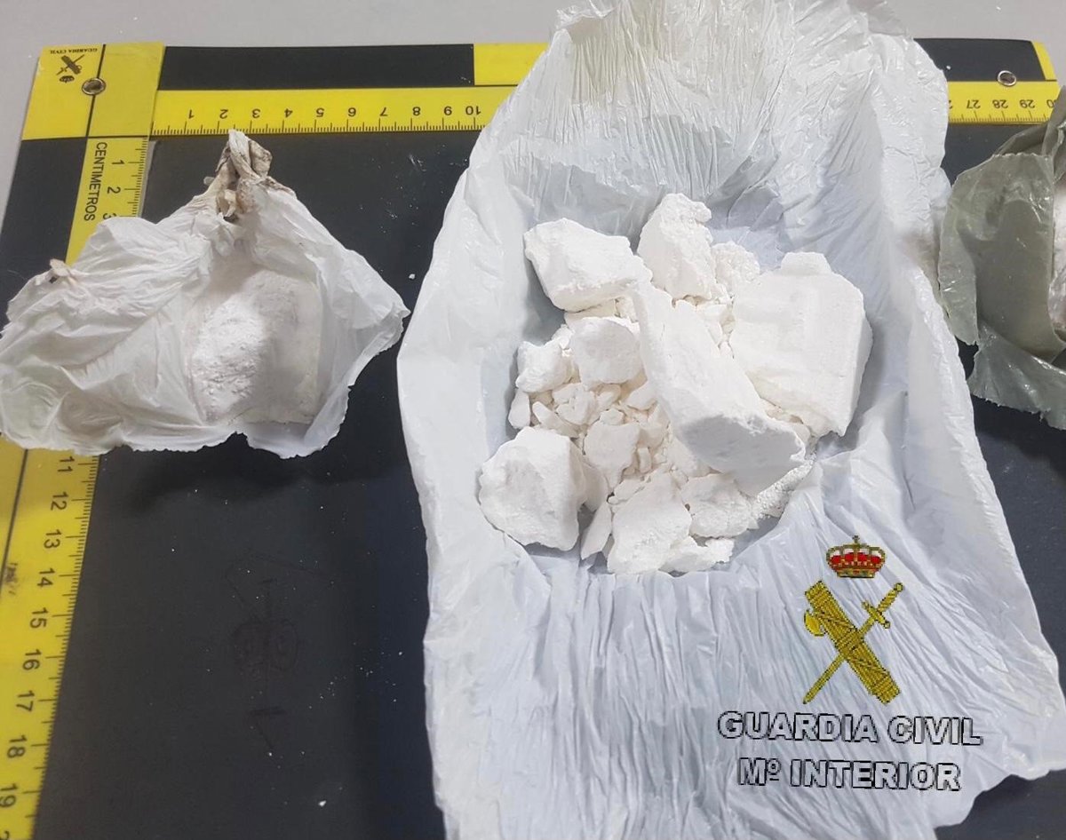 Así, tras la identificación del conductor, los agentes observaron que esta persona podía estar guardando algo entre sus pertenencias, haciendo entrega voluntaria de dos paquetes que contenían cocaína. Asimismo, el varón indicó a los agentes que en su domicilio de la localidad de Valverde del Camino guardaba más droga.
