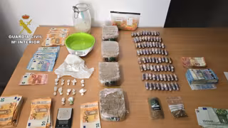 El resultado de la actuación policial finalizó con la intervención de 9.800 euros de billetes de distinto valor; 21 tabletas de hachís, que suman más de dos kilos; un kilogramo en bellotas de hachís; 36 gramos de cocaína en roca y 12 dosis de cocaína ya preparada dispuestas para su venta, además de material de pesaje y envoltorios.