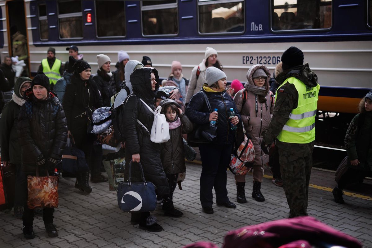 Un grupo de personas a su llegada procedente de Ucrania en la estación de tren de Przemysl, en Polonia. - Alejandro Martínez Vélez - Europa Press