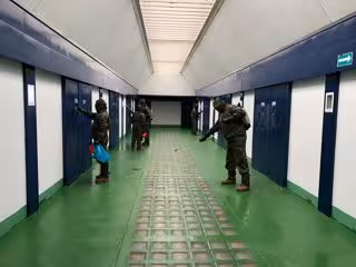 Imagen de las labores de desinfección de los militares en la cárcel de Huelva - EJÉRCITO DE TIERRA