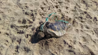 Un grupo de veraneantes ha encontrado en la tarde de este miércoles, en torno a las 12,30 horas, a una tortuga de grandes dimensiones que ha aparecido muerta en la playa de La Redondela de Isla Cristina (Huelva) con una cuerda en torno al cuello. El reptil tenía la concha "desgastada" por lo que se baraja que pudiera llevar varios días muerta.