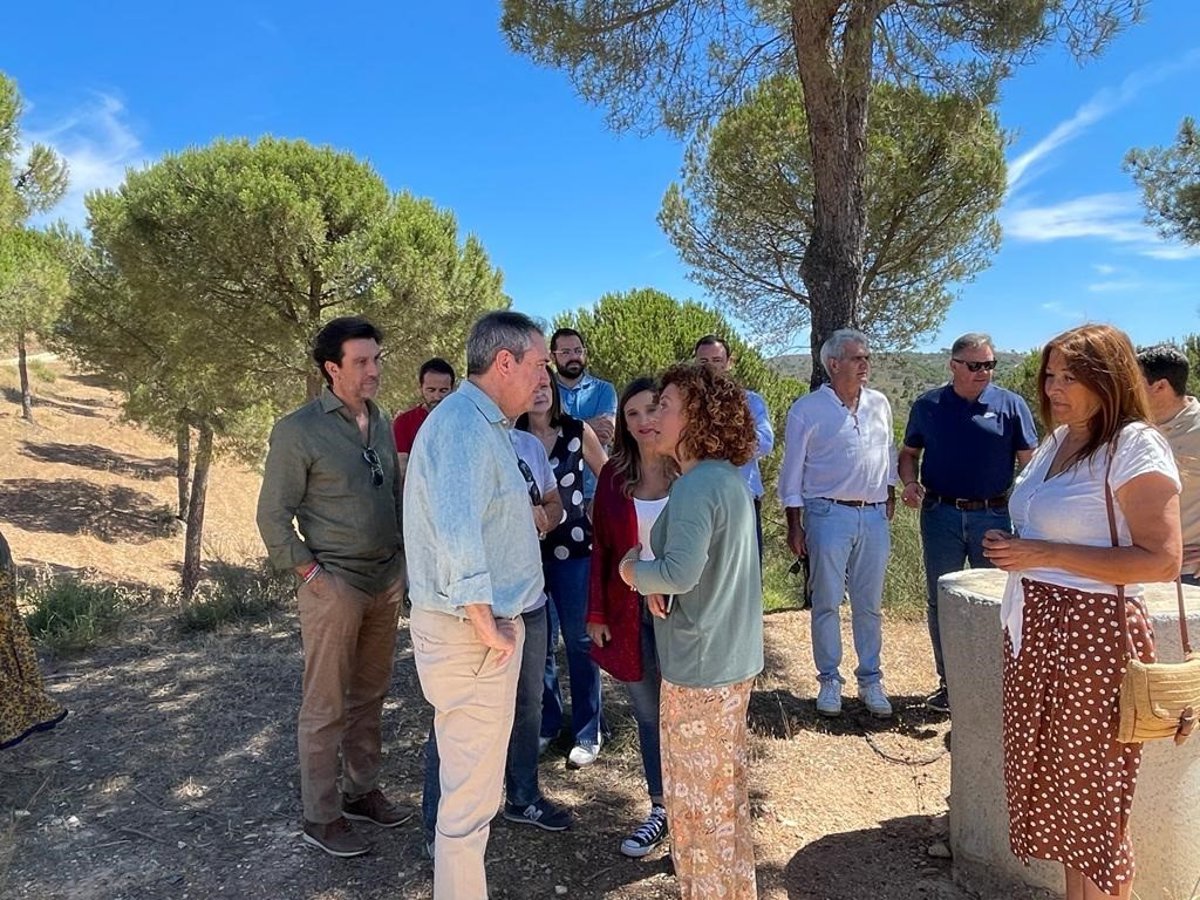 El secretario general del PSOE-A, Juan Espadas, durante una visita el núcleo forestal de La Pata del Caballo, en Escacena del Campo (Huelva). - PSOE DE HUELVA