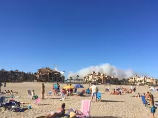 Playa desde donde se observa el humo del incendio de Isla Canela - EUROPA PRESS