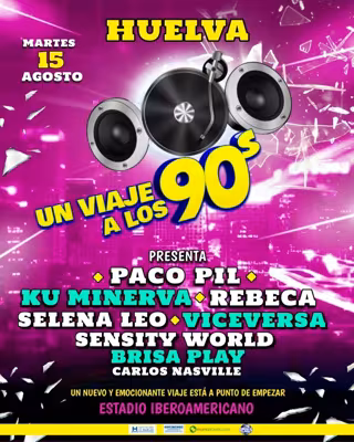 El Estadio Iberoamericano de Atletismo Emilio Martín acoge el próximo martes, 15 de agosto, 'Un viaje a los 90s', un espectáculo musical gratuito que revive los "mejores momentos" musicales de la década en montaje único que está de gira por toda España y ahora recala en Huelva, con un cartel de artistas iconos de la época y una fiesta al puro estilo 90s.