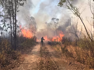 Uno de los efectivos del Consorcio Provincial de Bomberos de Huelva actúan en el incendio forestal declarado en Almonaster la Real (Huelva). - CONSORCIO PROVINCIAL DE BOMBEROS DE HUELVA