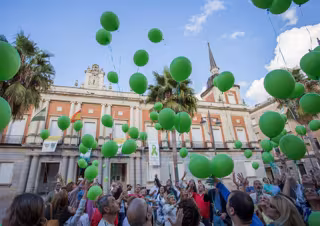 Archivo - Suelta de globos de Feafes frente al Ayuntamiento de Huelva con motivo del Día Mundial de la Salud Mental. - AYUNTAMIENTO DE HUELVA - Archivo