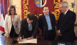 Previamente a la celebración del acto, que ha tenido lugar en la Casa de la Cultura del municipio, los dirigentes 'populares', entre los que también se encontraba la cabeza de lista al Congreso de los Diputados por Huelva, Fátima Báñez, han visitado el Ayuntamiento de Almonte (Huelva), donde han firmado en su libro de honor, trasladándose posteriormente a la sede de la Hermandad Matriz de Almonte.
