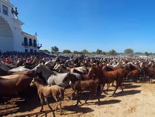 Los yegüerizos van a buscar al ganado a distintas zonas de las marismas de Doñana --La Marismilla, Las Nuevas, el Rincón del Pescador, la Vuelta de la Madre, Matasgorda, El Lobo, Las Mogeas y el Lucio de las Yeguas--, y las reúnen en la finca Madre del Rocío frente a la aldea almonteña.
