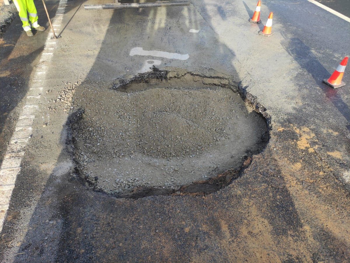 Tareas de tapado del socavón surgido en la A-49. - MINISTERIO DE TRANSPORTES Y MOVILIDAD SOSTENIBLE