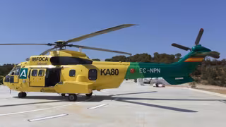 El Superpuma K-80 de la Brica del Infoca de Madroñalejo que colaboraba en la en la extinción de un incendio declarado en el Complejo Energético de Ence en Huelva este sábado ha finalizado su intervención.
