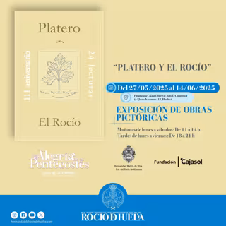 Por otro lado, el martes 27, a las 19,00 horas, también en la Sala El Comercial, tendrá lugar la inauguración de la exposición 'Platero y El Rocío', que aúna la literatura y la pintura, diversos artistas plásticos interpretan en sus cuadros los pasajes de 'Platero y yo' que Juan Ramón Jiménez dedicó al Rocío.