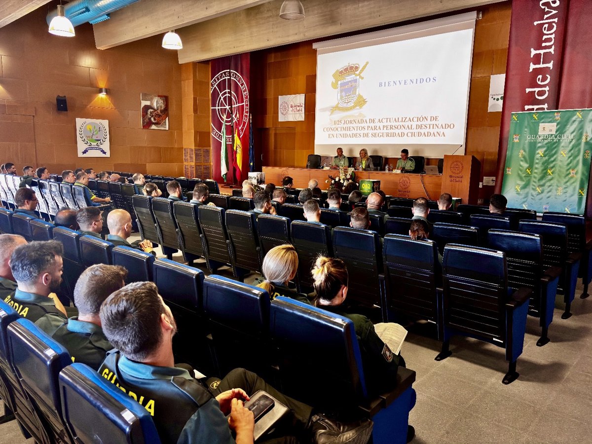 La Comandancia de la Guardia Civil de Huelva ha llevado a cabo la primera Jornada de Actualización de Conocimientos de Seguridad Ciudadana del año 2025 dentro del Plan establecido por la Jefatura de Enseñanza de DGGG, a la cual han asistido cabos y guardias civiles de la provincia, así como agentes de la Policía Nacional y diferentes policías locales de municipios de la provincia, invitados por ser estas jornadas "de interés para todo el colectivo de Fuerzas y Cuerpos de Seguridad del Estado".